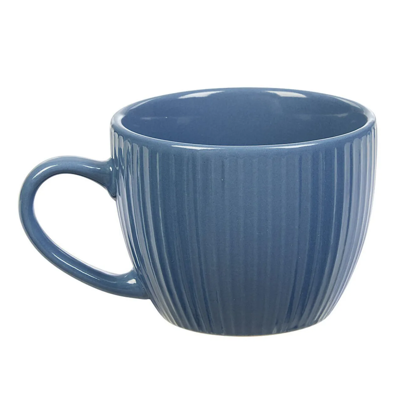 Petite tasse en faïence bleu et ses fines rainures verticales en relief, idéale pour boire votre expresso quotidien!