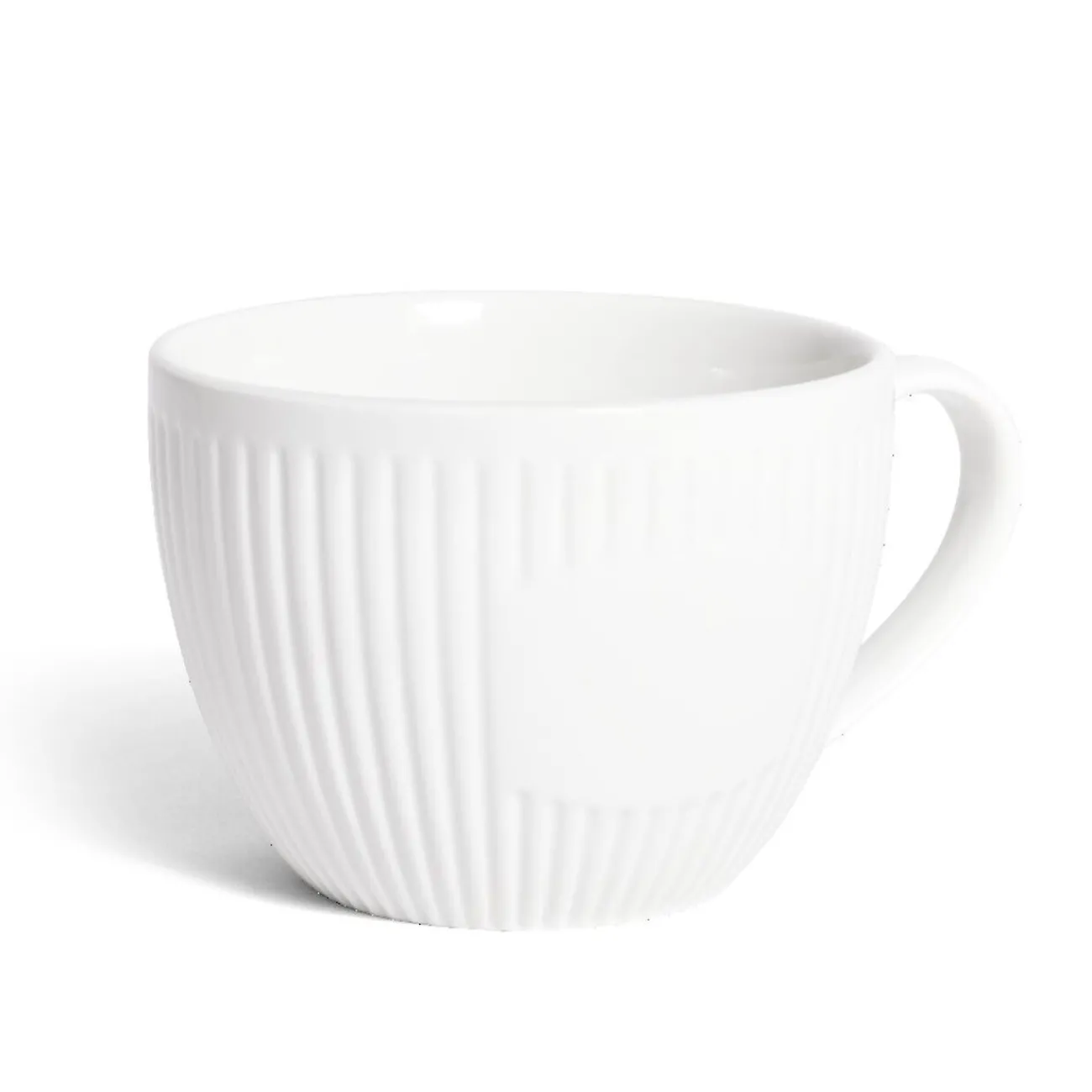Découvrez l’élégance intemporelle de cette tasse en porcelaine blanche ornée de stries embossées.