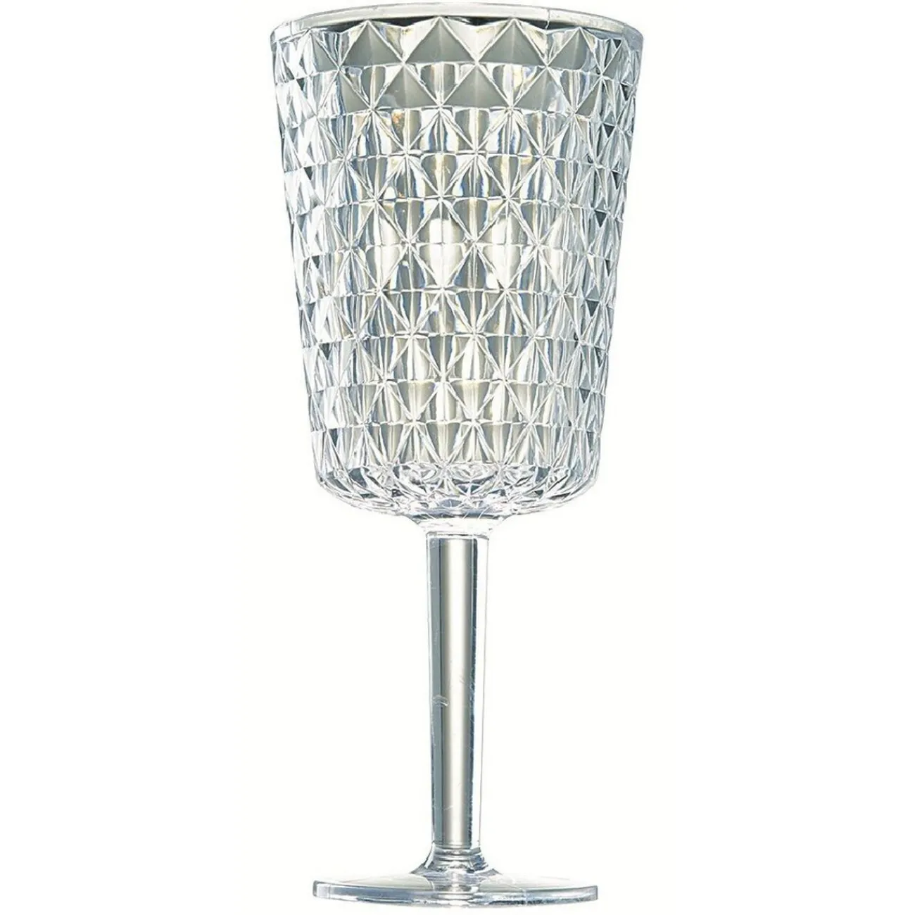 6 verres à pied en plastique d’une contenance de 30 cl.