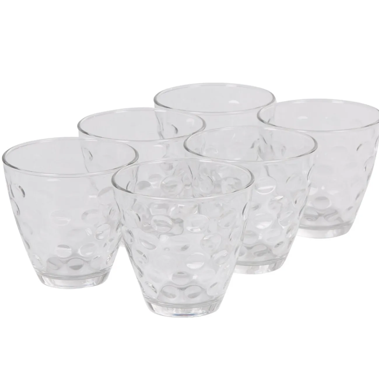 6 verres bas transparents de la collection Dots de Bormioli Rocco.