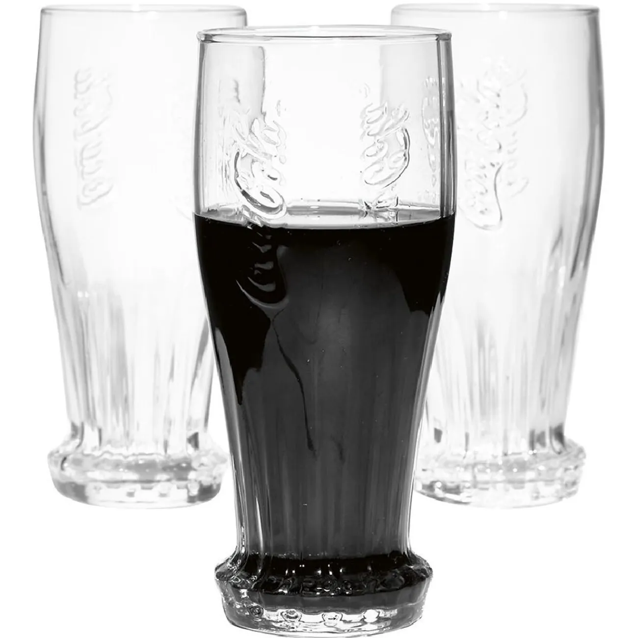 Lot de 3 verre transparent avec inscription Coca-Cola en relief.