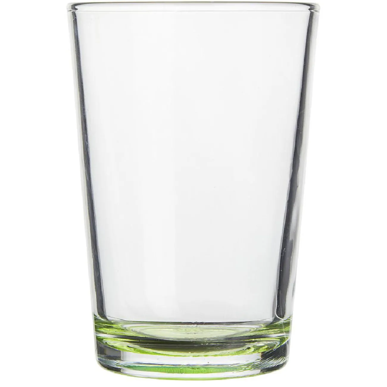 Lot de 12 verres transparents à fond coloré pour eau, jus de fruits et cocktails.